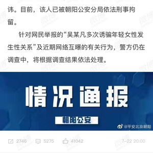 北京警方通报吴亦凡事件:以事实和法律廓清舆论风波疑云