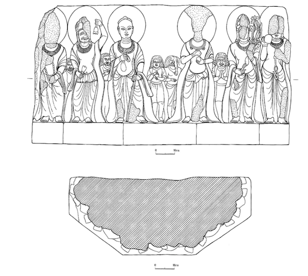 综上可知,佛坐像与造像底座应都是梁朝作品。造像底座束腰处的原始设计应与坐佛像宝座束腰处相似,也有十二护法神及其眷属像。因此,造像底座的原主尊像应该与坐佛像表现同一种题材。