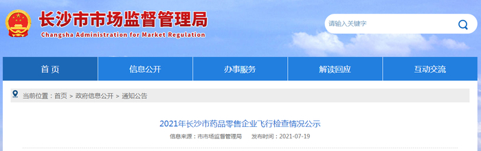 原标题:长沙市市场监管局公示对10家药店飞行检查结果