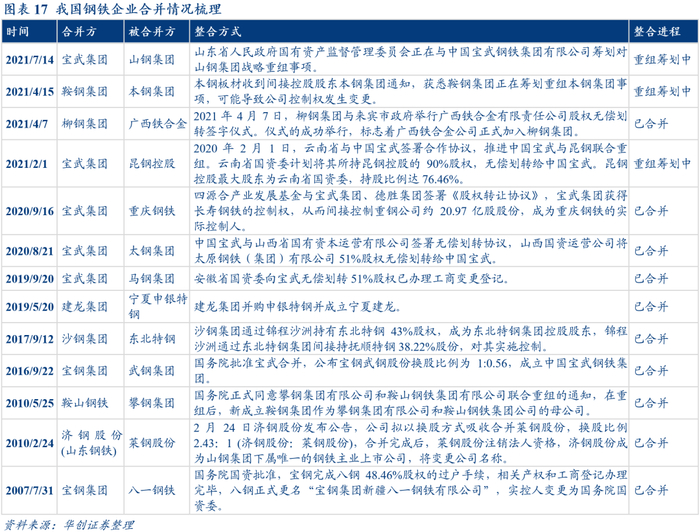 具体内容详见华创证券研究所7月22日发布的报告《基础篇:钢铁行业景气度与整合情况——钢铁行业2021年债券投资手册之一》