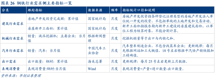 (二)需求侧跟踪要素:钢材表观消费量、房地产开发投资完成额等