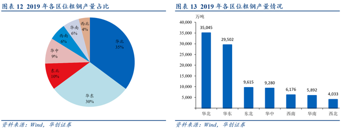 1、区位特征:钢铁产量“北重南轻”、市场分布“东强西弱”