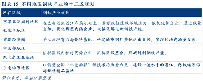 政策对不同地区的钢铁产业发展有不同规划。目前2021-2025年钢铁工业调整规划尚未出台,后续值得重点关注。2016年工业和信息化部印发的《钢铁工业调整升级规划(2016-2020年)》对我国不同地区的钢铁发展提出了规划。