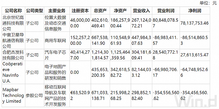 在主要子公司及对公司净利润影响达10%以上的参股公司情况中可以发现,中寰卫星以及车联网产品技术开发的Mapbar Technology Limited均处于亏损状态,且都已经连续三年亏损。中寰卫星三年合计亏损1.93亿,Mapbar三年合计亏损9.91亿。四维图新称,受国内外疫情影响,部分车厂策略性降低硬件配置,Mapbar 产品出货量减少,随着2021年全球半导体行业复苏,车厂需求逐渐恢复,对Mapbar业绩产生正向影响。至于何时才能产生盈利,或许只有时间才能给出答案。