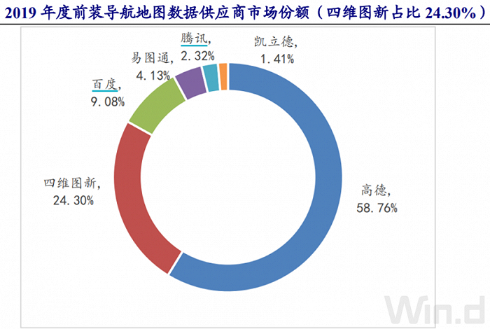 根据全球汽车领域权威调研机构Frost & Sullivan数据,四维图新2013年在国内车载导航市场的份额接近60.13%。随着市场上竞争者不断涌入,例如高德地图、百度、易图通、凯立德、腾讯、灵图等等,僧多粥少的局面渐渐涌现。截至2019年,四维图新国内车载前装导航市场份额已经降至24.30%。此外,手机导航对传统车载导航的挤占近几年也十分显著。