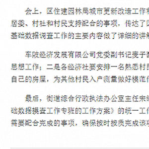 近日,天河区人民政府发布《车陂街召开车陂村城中村改造项目基础数据调查动员会议》公告,会上指出,将加快落实车陂村城中村改造项目基础数据各项调查工作,明确各项调查工作的时间节点、任务要求和需要配合完成的事项,为后续改造项目规划方案编制打好基础。