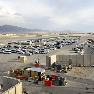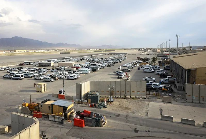 2021年7月5日,距离阿富汗首都喀布尔约50公里,美军撤离后的巴格拉姆空军基地,美军遗留的车辆。图|澎湃影像