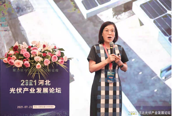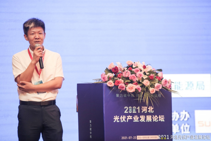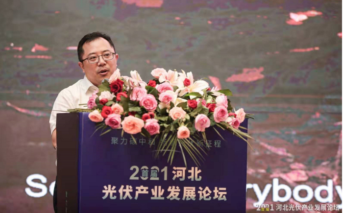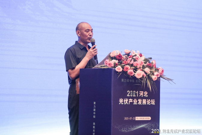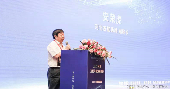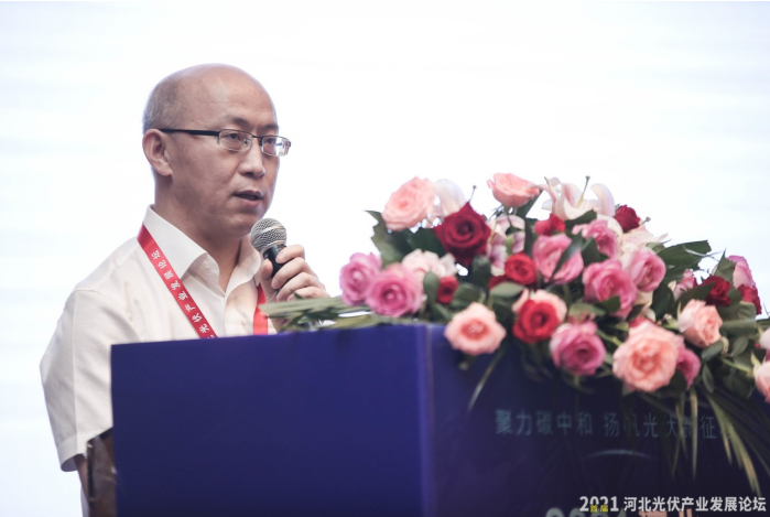 河北省能源局副局长安荣虎致辞时介绍了全省光伏产业发展的概况和优势。安荣虎介绍道:“截止到2020年底,全省光伏并网装机2191万千瓦,居全国第二,占全部电力装机的21.9%,预计到2025年,全省光伏新增装机容量规模将达到3200万千瓦,装机规模和发电量较‘十三五’期间翻一番。”