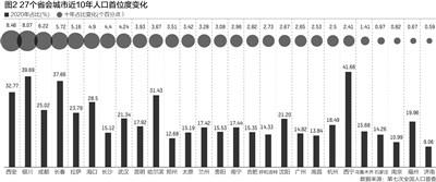 从近十年的首位度变化来看,占比提升最多的10个省会城市分别是西安、银川、成都、长春、拉萨、海口、长沙、武汉、昆明、哈尔滨,其中西安和银川提升幅度超过了8个百分点。在同口径下,十年来西安人口占全省比重提升了8.46个百分点,位居各大省会城市第一。专家分析,这些年来西安的招商引资力度很大,很多大项目来了之后,人才也随之集聚。同时,西安大力放开落户门槛,也吸引了很多人才落户。