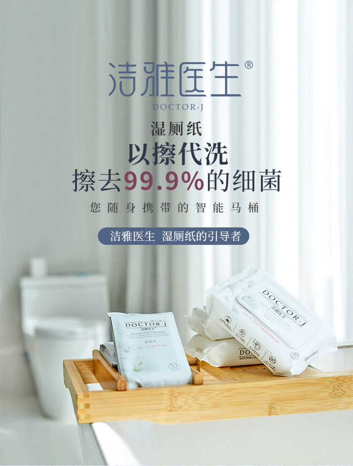 一张洁雅医生湿厕纸可以轻松搞定如厕的所有需求,温柔、干净、舒爽。