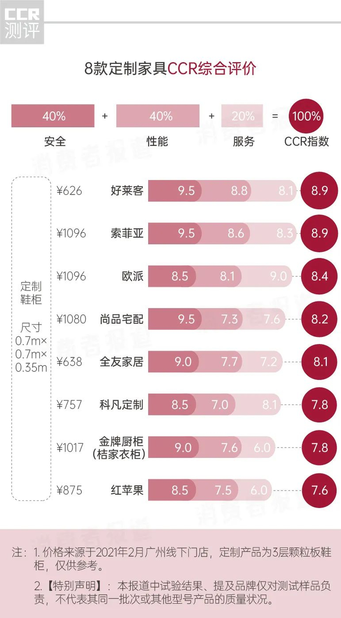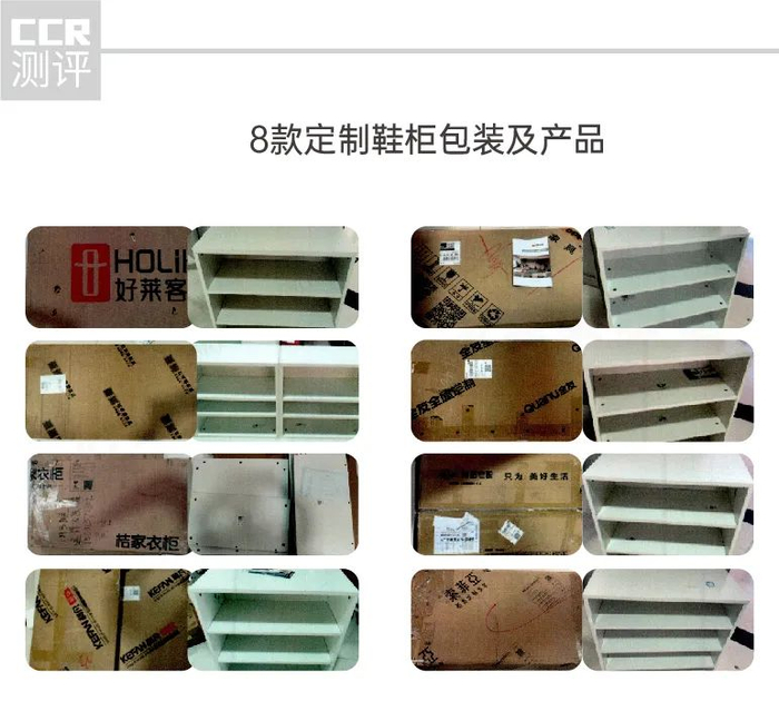 于是,2021年2月,《消费者报道》从市面上定制了索菲亚、尚品宅配、红苹果、好莱客、科凡定制、欧派、全友家居、金牌厨柜(桔家衣柜)等8款知名定制家具品牌的鞋柜,对比其价格、交货周期及服务等。