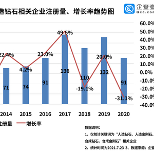 新京报贝壳财经讯 近年来,我国在人造钻石领域取得了巨大的突破,人造钻石价格方面比天然钻石低30%-40%。在这种价格优势下,行业有望实现快速增长。企查查数据显示,目前全国现存人造钻石企业3045家。从近十年的注册量来看,2017年达到最高,全年共注册136家,同比增长率达到49.5%;2013年最低,仅注册58家。截至7月22日,今年共注册15家。从地域分布来看,湖南、广东、河南分别是人工钻石企业数量排名前三的省份。