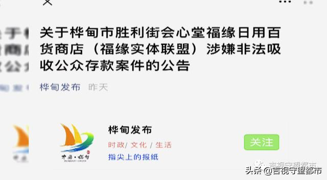 另外,桦甸市公安局还发布了关于桦甸市胜利街会心堂福缘日用百货商店(福缘实体联盟)涉嫌非法吸收公众存款案件的公告,同样,案件受害人可携带相关资料到桦甸市公安局经侦大队报案。