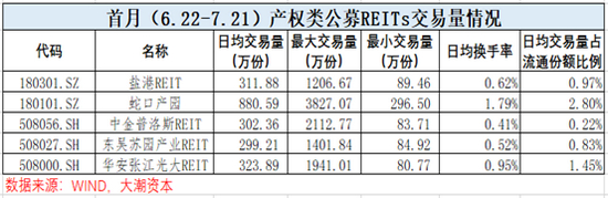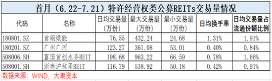 (四)受整体规模限制,REITs基金成交量不大,换手率低