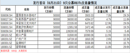 上市一个月时间里,9只公募REITs基金在涨跌幅、交易量、换手率等方面表现如何?