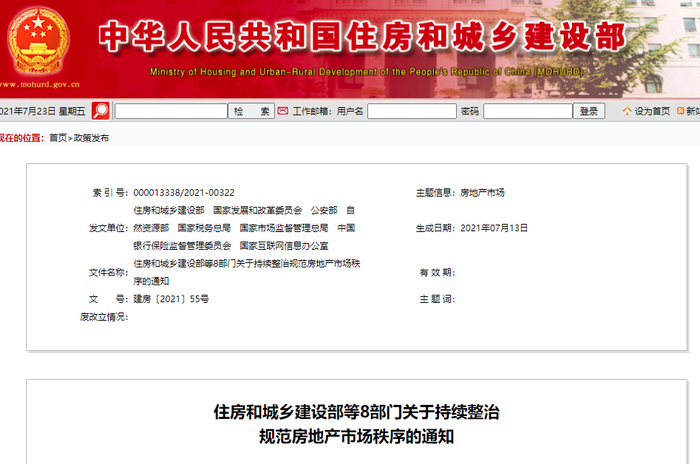 7月23日,住房和城乡建设部等8部委发布《关于持续整治规范房地产市场秩序的通知》,整治重点聚焦于房地产开发、房屋买卖、住房租赁、物业服务四个方面,住建部将力争用3年左右时间,实现房地产市场秩序明显好转的主要目标。