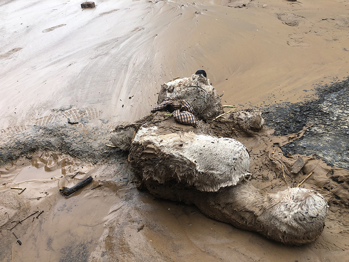 洪水过后,一只玩具熊“流落”街头。