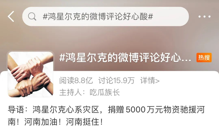 图|微博热搜话题#鸿星尔克的微博评论好心酸#