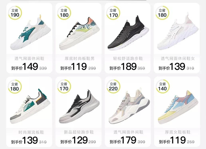 现在的鸿星尔克,鞋子衣服定价大多是100多块,还有些产品甚至只要几十块。在直播间有人要主播拿出最贵的鞋子,主播便拿出了一双249块的——依然是鞋中的“白菜价”。