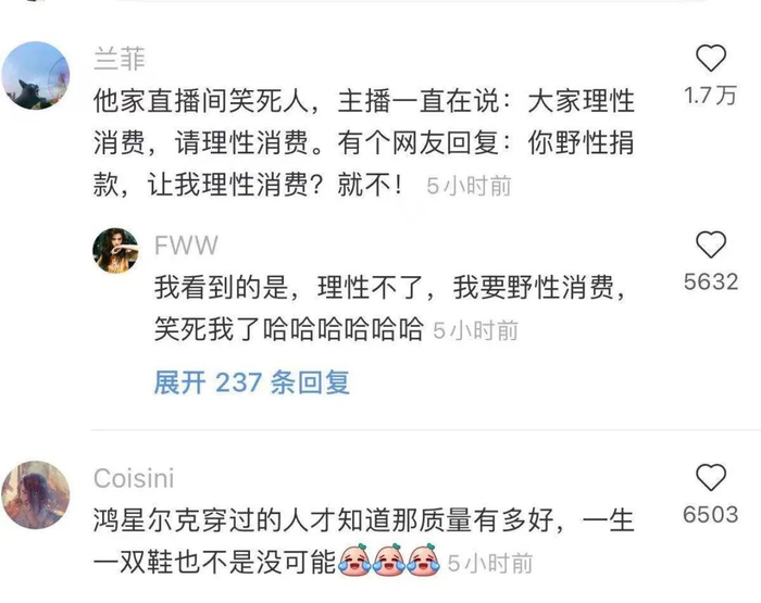 网友说不想理智,就要“野性消费”,场面一度很魔幻。