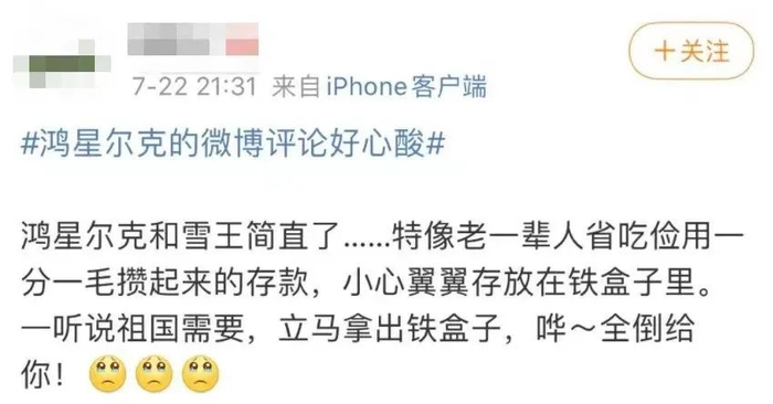 图|网友感慨鸿星尔克和雪王就像老一辈人省吃俭用一分一毛攒存款