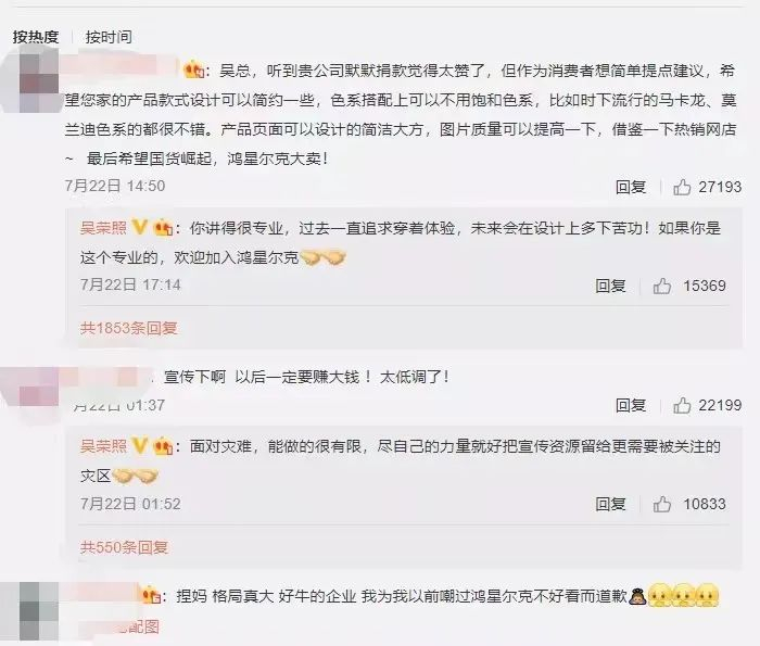 图|老板吴荣照下场互动进一步提升了网友对品牌的好感度
