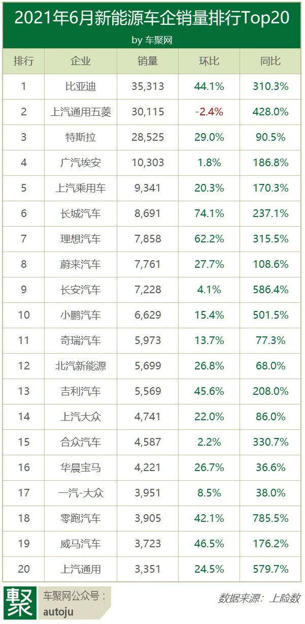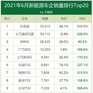 原标题:6月新能源:汉助力比亚迪登顶,特斯拉2.85万 环比增29%
