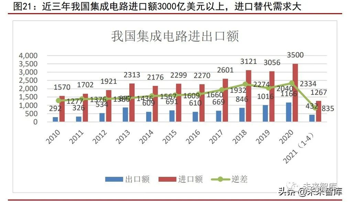随着我国集成电路技术的进步,以及产能的扩张,我国集成电路进口替代取得了显 著的效果,并开始全球扩张,扩大出口。
