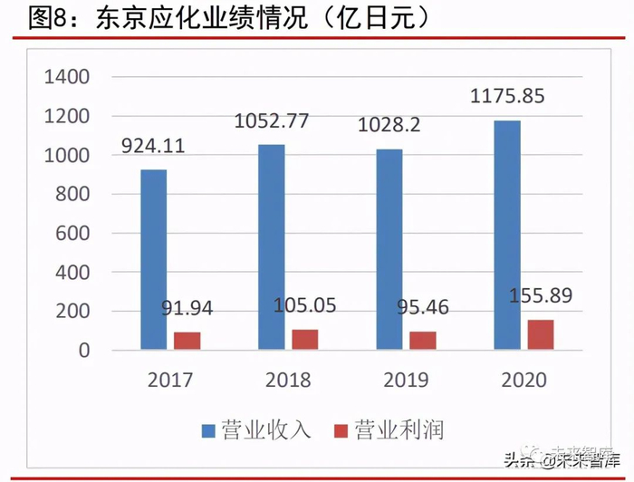 2020 年,公司营业利润为 155.89 亿日元,同比大幅增长 63.30%,其中材料业务实 现营业利润 203.95 亿日元,同比增长 51.50%。