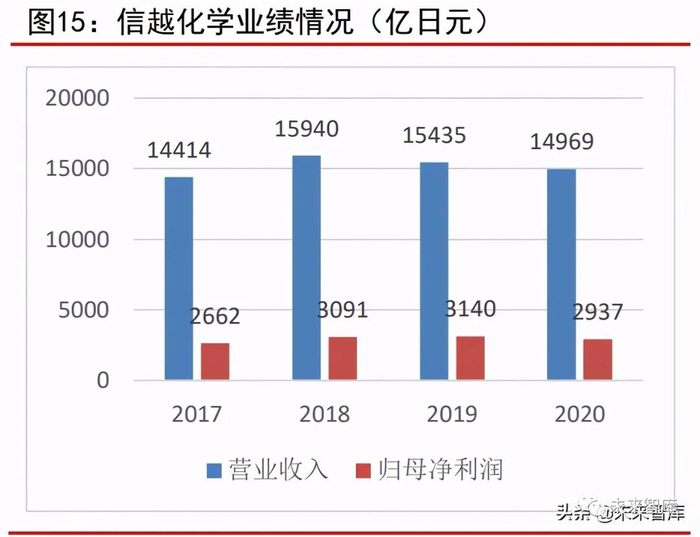 2020 年归母净利润 2937 亿日元,同比下降 6.46%;营业利润 3922 亿日元,同比下 降 3.4%,其中电子和功能材料部门实现营业利润 702 亿日元,同比增长 2.6%。