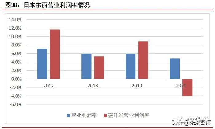 2017-2020 年,公司营业利润率分别为 7.1%、5.9%、5.9%、4.8%,其中碳纤维复合 材料营业利润率分别为 11.7%、5.3%、8.9%、-4.1%。