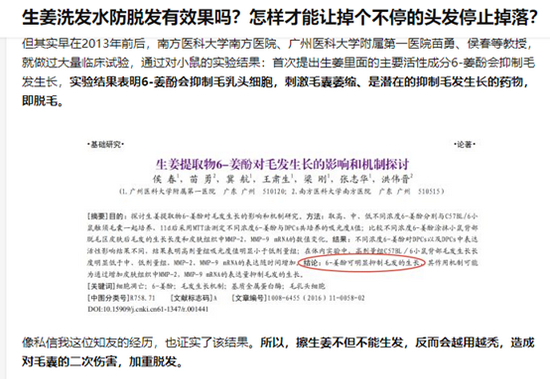 有人引用各种数据,得出生姜抹头皮不仅不生发,还会脱毛。