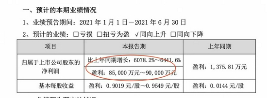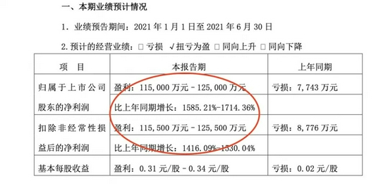 远兴能源预计2021年上半年归属于上市公司股东的净利润为11.5亿元至12.5亿元,上年同期亏损7743万元。