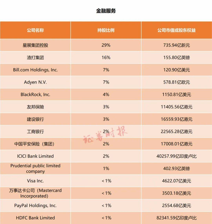 在中资上市公司持股方面,淡马锡持有建设银行、工商银行、中国平安等大型金融股,持有快手、腾讯、美团、阿里巴巴等科技股,以及药明康德等医药企业。