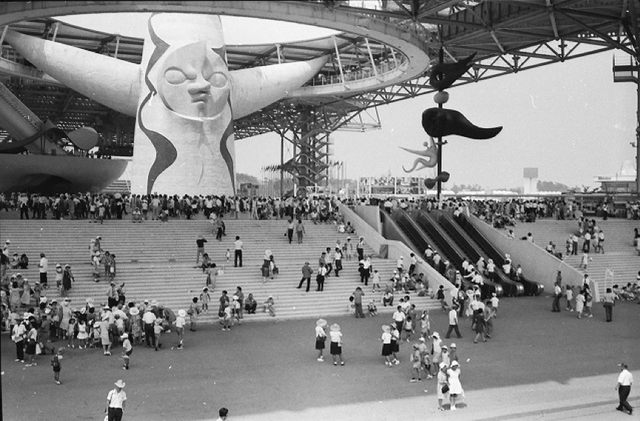 1963 年,日本批准《国际展览会公约》,正式加入国际展览局,并开始寻求在日本主办世界博览会。因为东京在翌年就将举办奥运会,所以在政府和经济界的协调下,决定在大阪举办世博会。1965 年,设立了由政府、经济界和地方自治体共同组成的日本世界博览会协会,以促进经济进一步发展为目标,开始准备世博会。1970 年3 月,大阪世博会在大阪北部的千里丘陵开幕,持续183天的博览会在9 月闭幕,其间,共有77 个国家参加了这次以“人类的进步和协调”为主题的世博会。除了东道国的日本馆,还设有58 个外国馆、33 个企业馆以及游乐场。