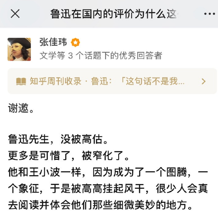 知乎上有个问题:鲁迅在国内的评价为什么这么高,他是不是被高估了?