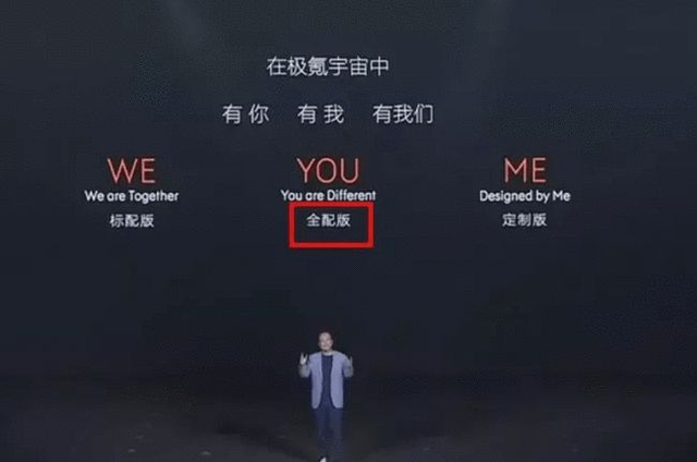 此外,极氪001的EC光感天幕配置,也是网友关注较多的一个话题。在此前发布会上,极氪亮出这样一张图,上面写着YOU版本为全配版,对于大多数人的理解而言,全配版的意思毋庸置疑,无需选配,全部配置都有。