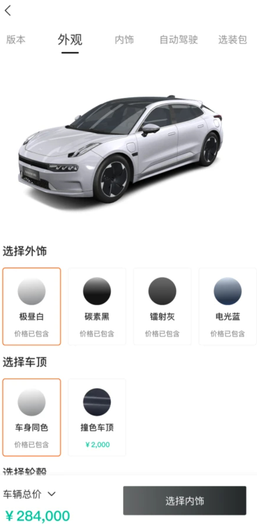 标配变选配,现在回头看,这更像是官方将所有配置全部拉满放在顶配车型中,误导你这是标配的骗局;而定价中的文字游戏,或许也是极氪催促小定车主转大定的一种手段。