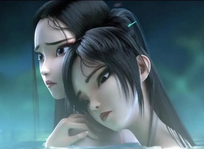 《白蛇缘起》打安全牌的明智,在于移植了《青蛇》的百合潜文本,但没有花大篇幅表述两人纠葛的同性之爱。片尾的双人镜头,直接戏仿徐克电影中的沐浴画面。通过“姐姐,我们已经朝夕相伴百年了”等台词,让观众暂时抛却男性符号秩序话语。