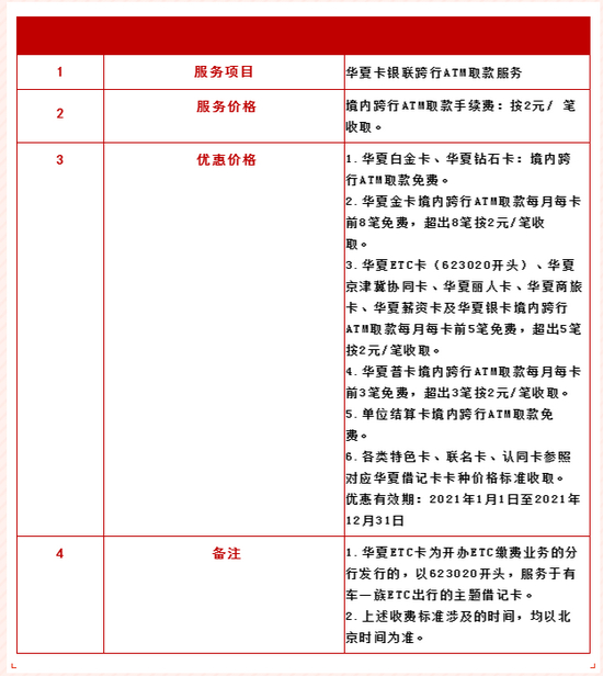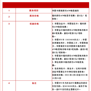 华夏银行发布关于借记卡ATM跨行取现服务手续费价格公告