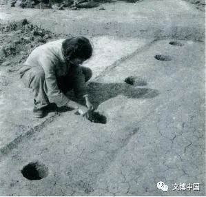 1974年王劲先生在清理盘龙城一号宫殿房屋分间柱洞