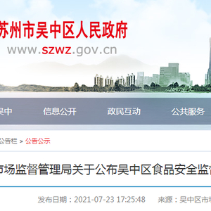 江苏省苏州市吴中区市场监管局:23批次食品抽检不合格