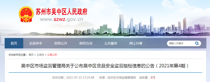原标题:江苏省苏州市吴中区市场监管局:23批次食品抽检不合格