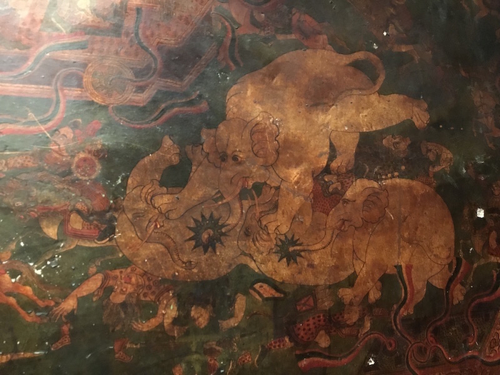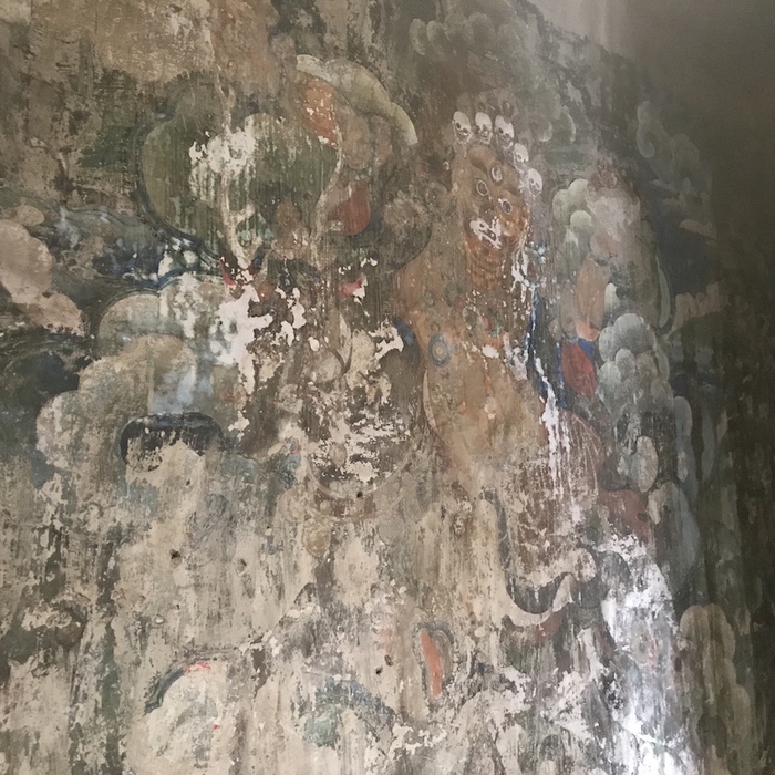 澎湃新闻记者了解到,在《拉萨历史城区城市景观保护管理规划》(2015年9月)中提到,“吉本岗拉康”遗产核心要素保存现状评估为“差、残损严重”。对此,2018年,由拉萨市、城关区文旅部门投入资金、组织人手,进行全面修缮,包括屋顶及地面的阿嘎土加固,对壁画进行了专业清理,替换损坏严重的立柱等。