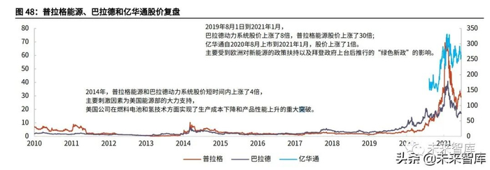 市场:巴拉德在 2018 年达成具有历史意义的战略合作并深度开拓中国市场,PS 从 18 年中的 5 左右提升至 20 年初的 20;政策:疫情背景下美国财政“大放水”,叠加 2020 年底拜登上台重启美国交通 新能源革命,新能源车相关公司估值均有显著提升,巴拉德和普拉格 2021 年初 PS 高点近 100。