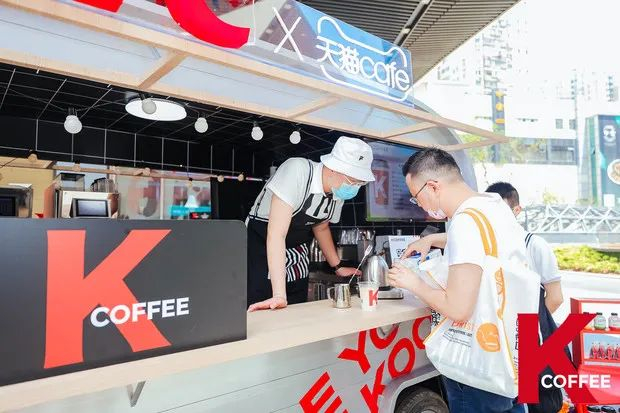 △ Kcoffee和天猫Cafe合作的线下咖啡车。