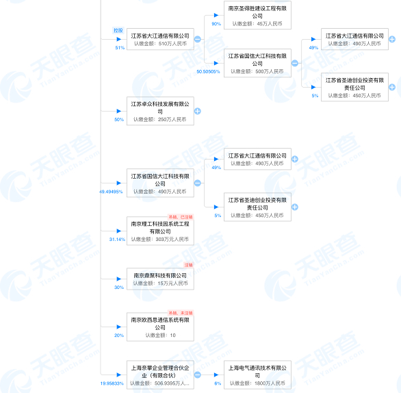 根据相关上市公司披露,在上海电气和国瑞科技起诉的企业中,出现了共同的被告富申实业和南京长江。上海星地通则为富申实业和南京长江的债务与国瑞科技签协议承担连带责任;同时,上海星地通还是上海电气通讯公司持股比28.5%的第二大股东。另外,汇鸿集团与中天科技的客户都是航天神禾。