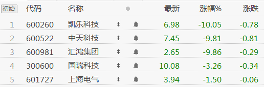 7月27日,凯乐科技(600260.SH)开盘一字跌停,连收两个一字跌停板;汇鸿集团(600981.SH)在经历了前一天的跌停后,继续低开;中天科技(600522.SH)在经历三天两一字跌停后,微幅高开;国瑞科技(300600.SZ)在经历连续阴跌后小幅低开。