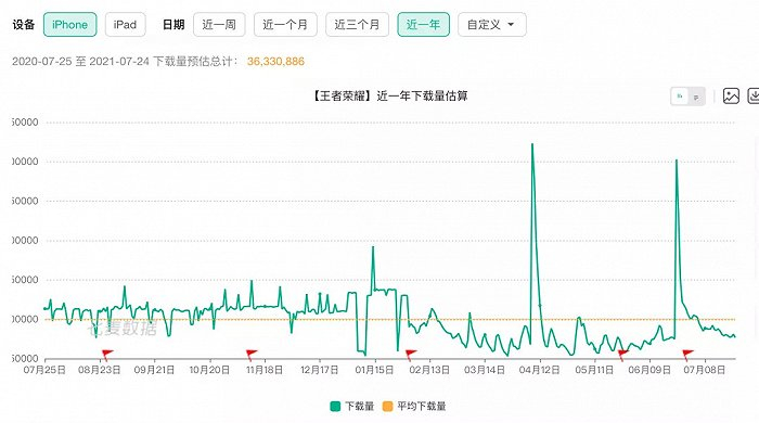 据七麦数据显示,《王者荣耀》在苹果应用商店内近一年的日均下载量,正在缓慢下滑。虽然,《王者荣耀》的地位暂时还没有其它游戏能取代,但巅峰已过的《王者荣耀》还能走多远,对于腾讯而言,也需居安思危。
