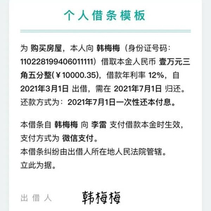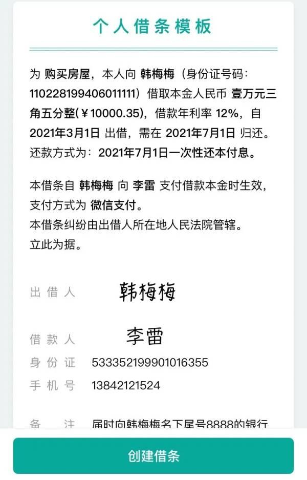 7月28日,腾讯电子签上线“小借条”功能,用户打开“腾讯电子签”小程序后,选择前往创建小借条,按提示填写借款人、出借人、金额、事由、借款期间、利率、支付方式和还款方式等内容,借还双方经实名认证后手写签名,即可创建完成。
